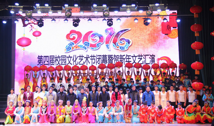 1月7日晚,第四届校园文化艺术节闭幕式暨贺新年文艺汇演在我校文化中心隆重举行。校领导吴如根、任国兴、薛莲、成伯君出席晚会现场,宣传部、教务处、学工处、团委、教学系部负责人与贾汪校区3000余名学生观看了演出。 晚会在校舞蹈社团舞蹈《开门红》中拉开序幕。随后,由各学生社团精心排演的合唱、武术表演、舞蹈、小品等16个节目依次登场,一个个节目精彩纷呈,观众们沉浸在浓烈的艺术享受之中,台下不时响起热烈的掌声。节目过程中,举行了颁奖仪式,颁发了2015年度国家励志奖学金、特等奖学金、公益活动奖、社会实践先进个人、优秀学生干部奖、优秀社团奖、第四届校园文化节优秀表演奖等奖项。 晚会传递了新年祝福,搭建了展现社团魅力的平台,展示了我校学生社团良好的形象,活跃了校园文化氛围,丰富了同学们的课余生活,集中展现了我校校园文化艺术成果。本届校文化节举办近一年来,得到了师生们的大力支持,期间分别开展了校园主持人比赛、演讲比赛、创业比赛及各类文体竞赛,在校园内营造了浓厚的文化艺术氛围,每年的文化节已经成了校园内一道独特的风景线。 文/孟祥坤 图/耿刚