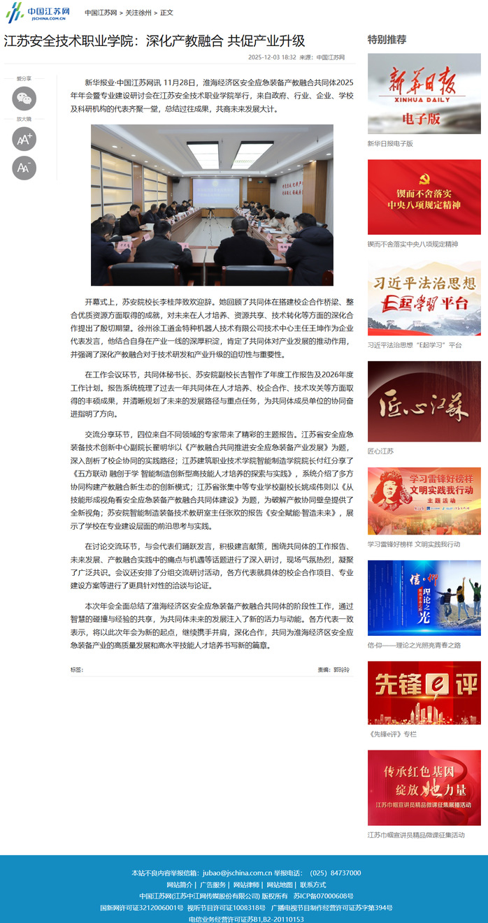 中国江苏网:江苏安全技术职业学院:深化产教融合 共促产业升级