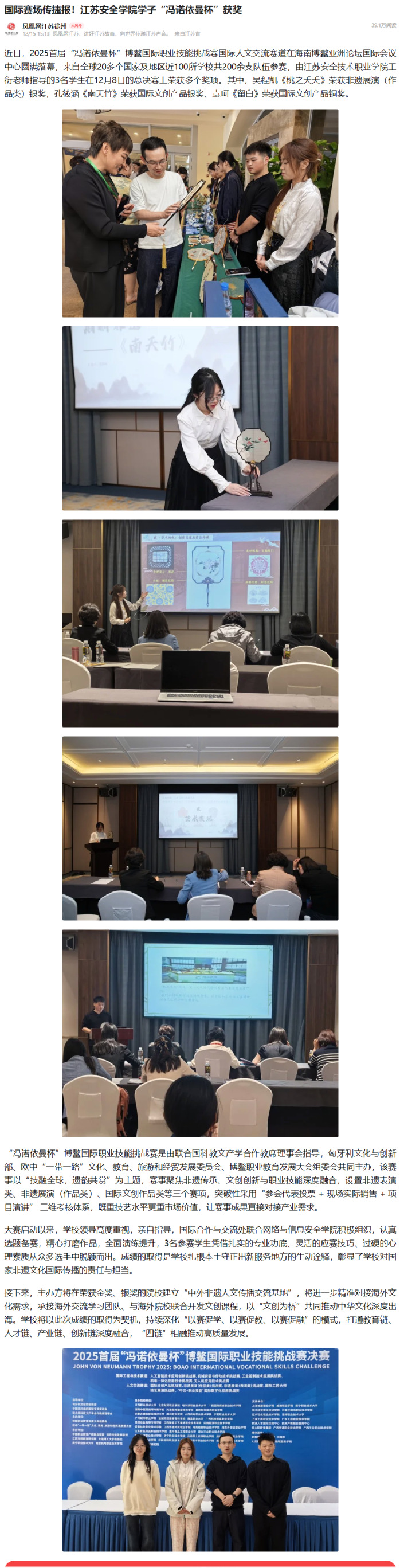 凤凰网江苏:国际赛场传捷报!江苏安全学院学子“冯诺依曼杯”获奖
