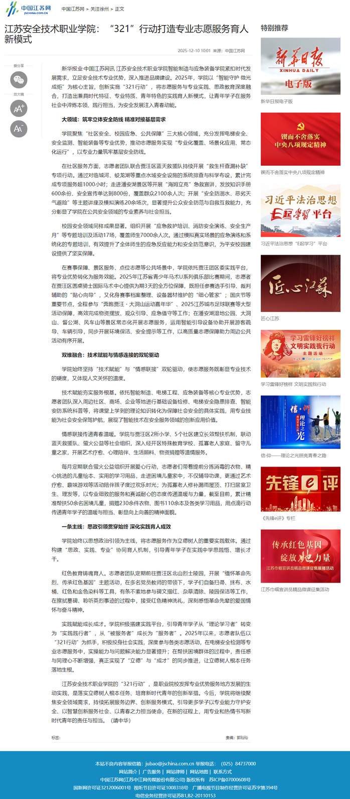中国江苏网:江苏安全技术职业学院:“321”行动打造专业志愿服务育人新模式