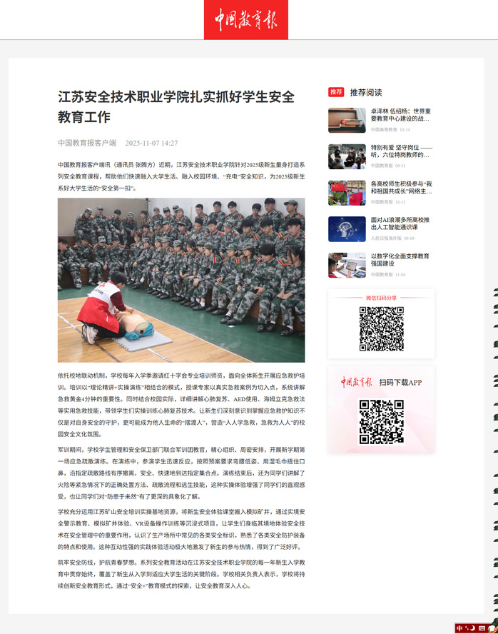 中国教育报客户端:江苏安全技术职业学院扎实抓好学生安全教育工作