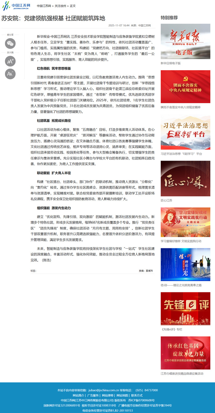 中国江苏网:苏安院:党建领航强根基 社团赋能筑阵地