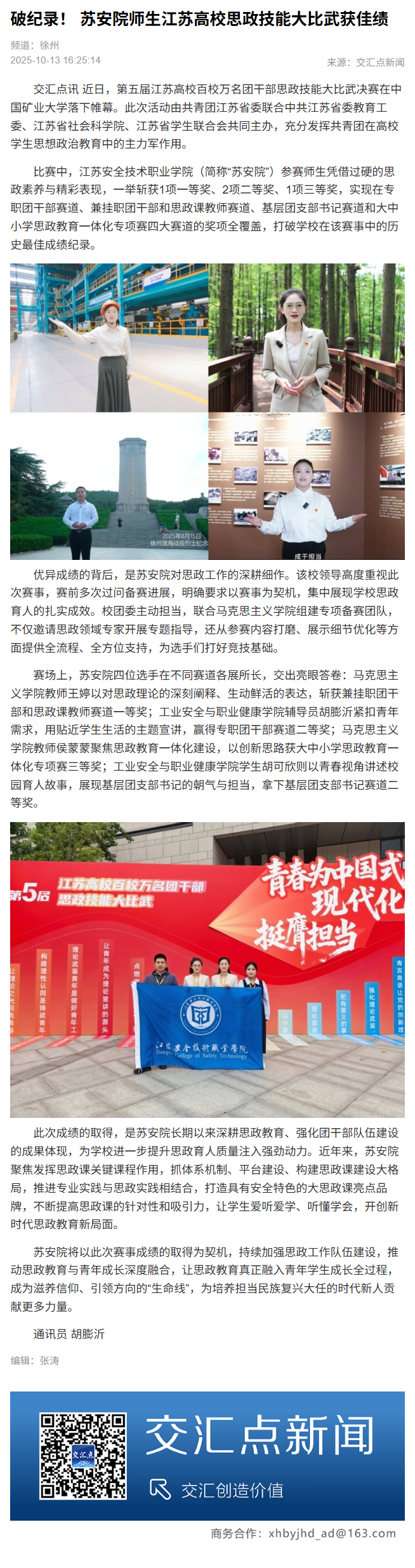 交汇点:破纪录! 苏安院师生江苏高校思政技能大比武获佳绩