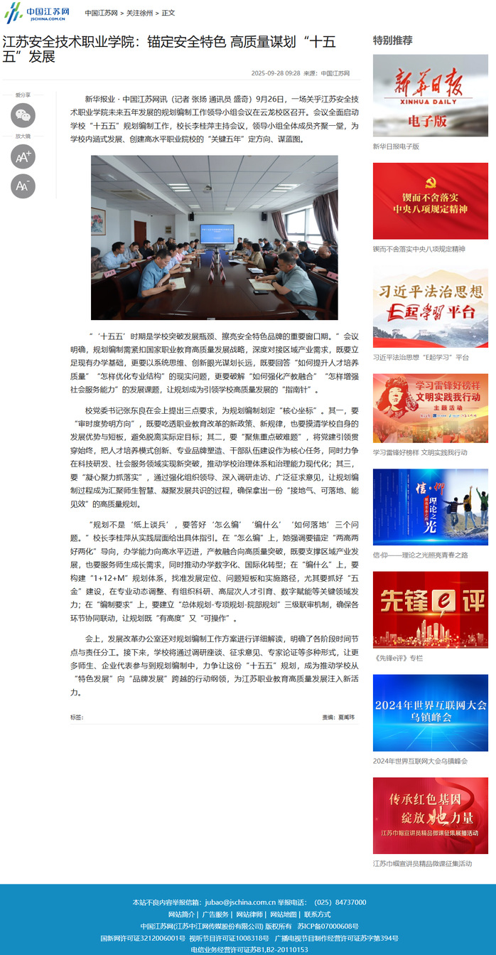 中国江苏网:江苏安全技术职业学院:锚定安全特色 高质量谋划“十五五”发展