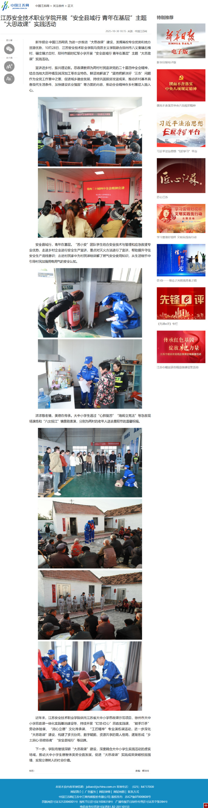中国江苏网:江苏安全技术职业学院开展“安全县域行 青年在基层”主题“大思政课”实践活动