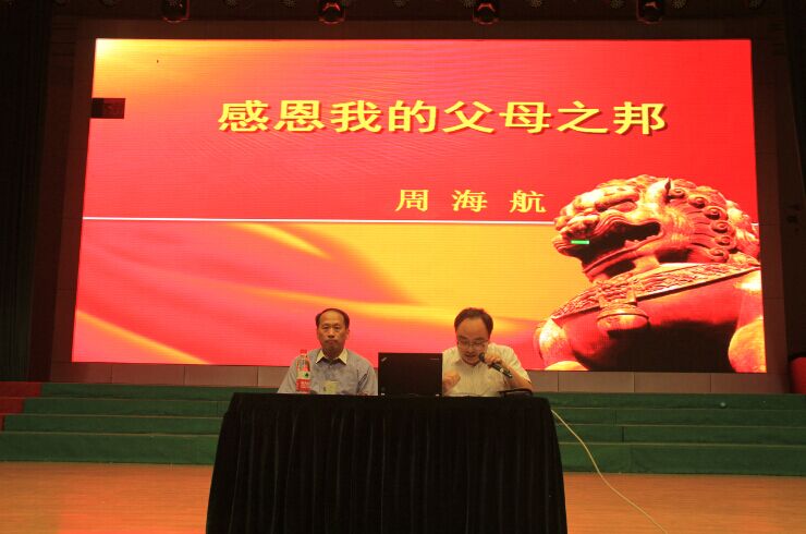 6月10日下午,我校在文化中心举行大型感恩励志教育报告会,报告会由学工处处长黄清站主持,邀请徐州工程学院党委宣传部副部长周海航做“感恩我的父母之邦”主题报告,我校师生1000余人聆听了报告。