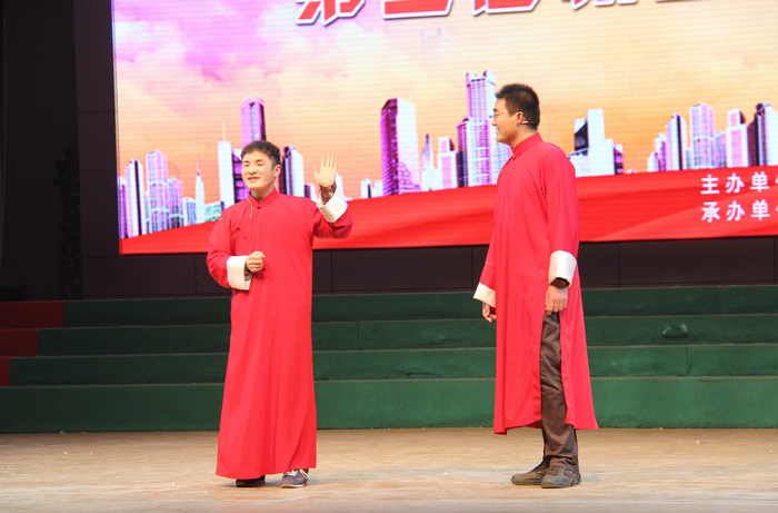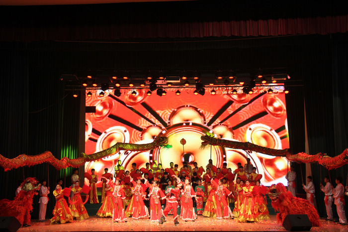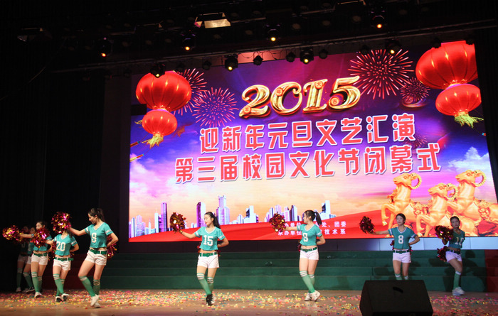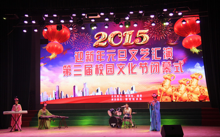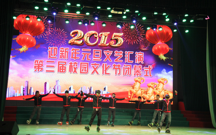 节奏明快的开场舞《欢聚一堂》拉开了元旦晚会的序幕,全场气氛热烈,掌声雷动。精彩节目依次上演,校园十佳歌手冠军江天赐一首《我爱你中国》时而高亢、时而低沉,博得全场观众的热烈掌声;相声《满腹经纶》尽展说学逗唱,给观众带来无限欢乐;哑剧《负二代》直叙社会现象,点燃了现场观众的激情,把晚会的气氛推向了高潮。晚会节目精彩纷呈、形式多样,有民族舞、街舞、曳步舞、拉丁舞、乐器合奏等,展示了我校学子的青春、活力与梦想。