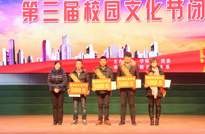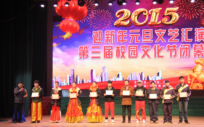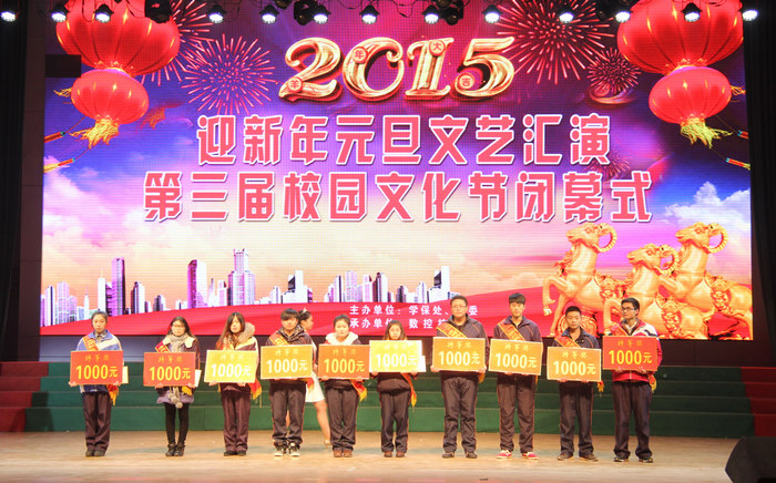 晚会还对国家励志奖学金获得者、学校特等奖学金获得者、省市三创先进集体和个人以及在校园文化节中表现突出的先进单位和优秀个人进行了表彰。