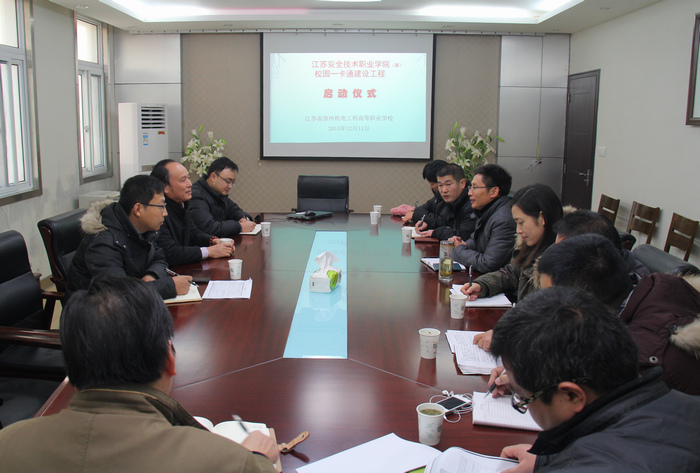 12月11日,我校在办公楼第一会议室举行校园一卡通建设工程启动仪式。江苏建苑信息科技开发有限公司总经理方刚、副总经理廖阔,我校副校长吴如根、相关部门负责同志出席启动仪式。
