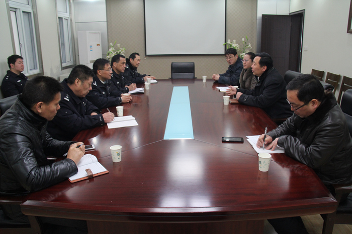 孙健身书记代表学校对杨局长一行的到来表示欢迎,对贾汪分局长期以来对我校内保工作的支持表示感谢。李志浩主任、邹明副处长分别就学校新疆內职班、学校安保工作开展情况向分局领导进行了汇报。