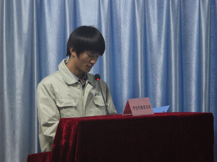 学生代表王国庆发言表示,感谢学校和公司提供的工学交替的机会,使自己收获不少,是成长过程中的宝贵经历。通过实习,感受到了现代化生产制造企业的生产,体会到工作的辛苦,父母的不容易。回到学校后要继续认真的学习,把握住学习机会提高自己,为将来的就业打下牢固的基础。