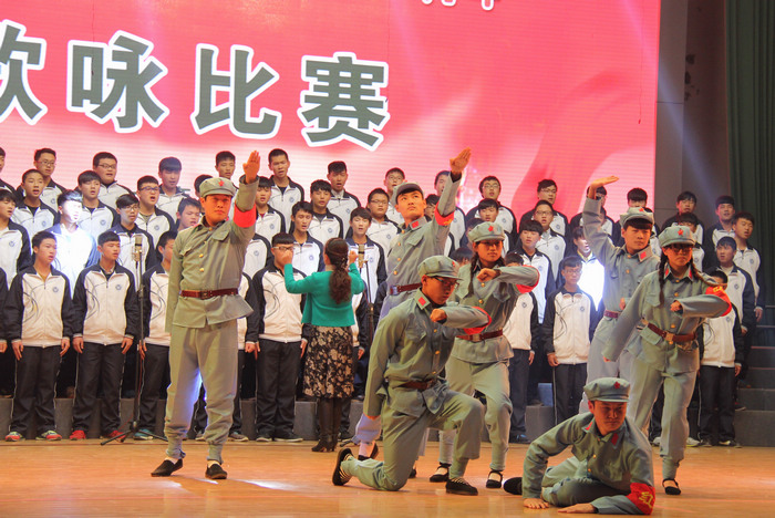 比赛在雄壮的国歌声中拉开帷幕,共7支教师代表队和17支学生代表队参加歌咏比赛。《歌唱祖国》、《长征》、《在太行山上》、《保卫黄河》、《南泥湾》、《走向复兴》、《映山红》等一首首脍炙人口、耳熟能详的经典歌曲,唱出了革命年代的崇高信仰,唱出了广大师生的爱国热情和赤子之心;展现了全校师生积极向上、团结进取的精神风貌。雷鸣般的掌声久久回荡在学校的上空。