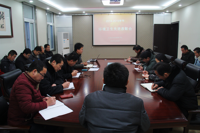 12月10日下午,2014~2015学年环境卫生先进集体表彰会在学校办公楼二楼西会议室举行。副校长吴如根出席会议并对先进集体进行颁奖。爱卫会全体成员、学管主任参加会议。会上,总务处刘卫副处长宣读了表彰决定。