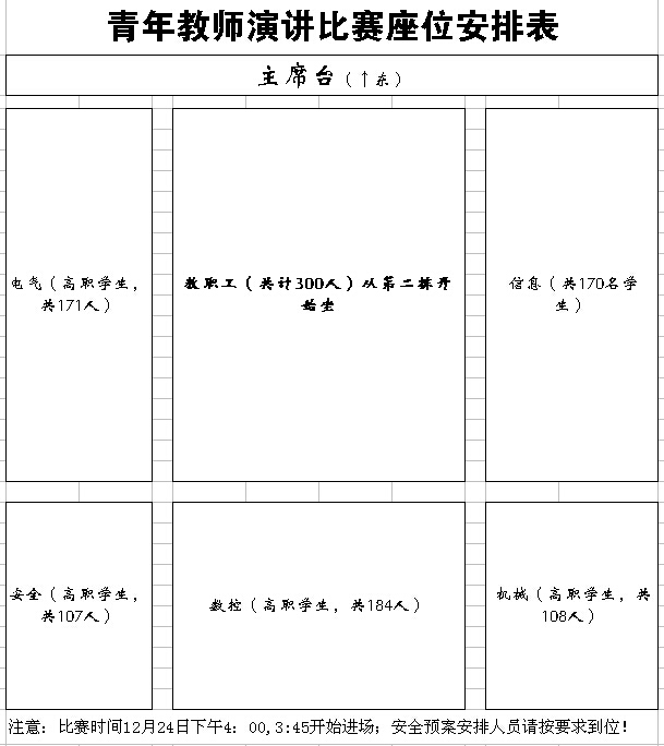 届时请各支部认真组织安排好本单位教职工及学生提前十五分钟到会。具体座次安排如下。