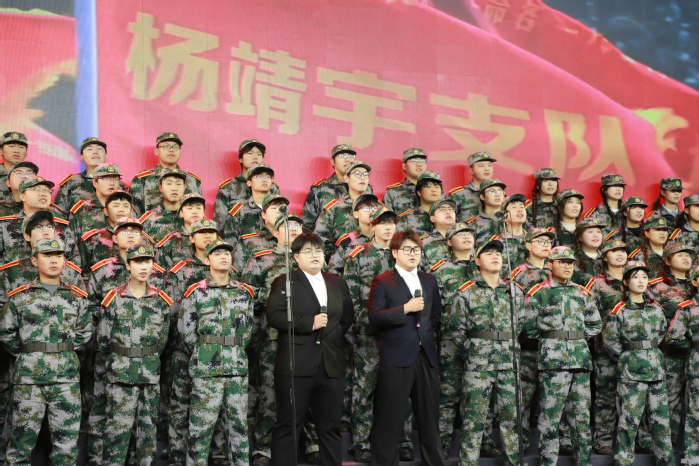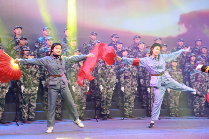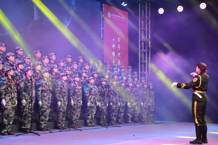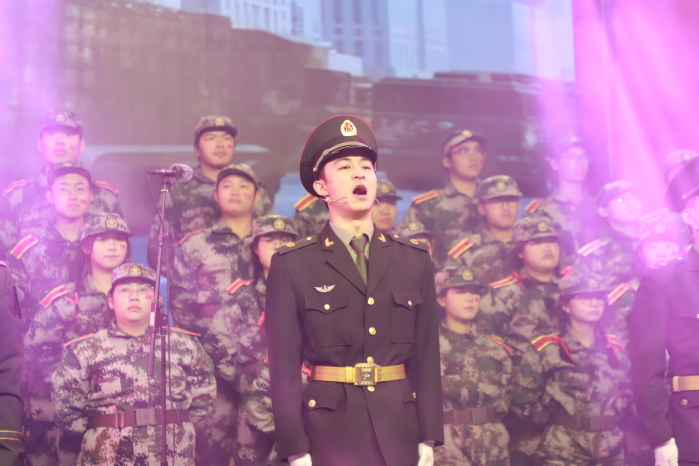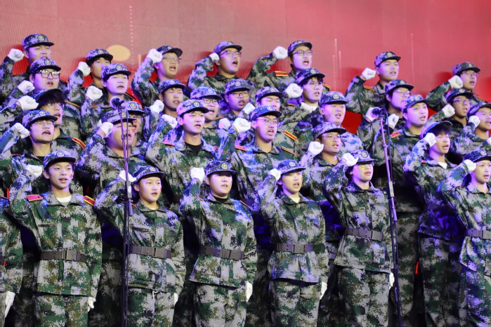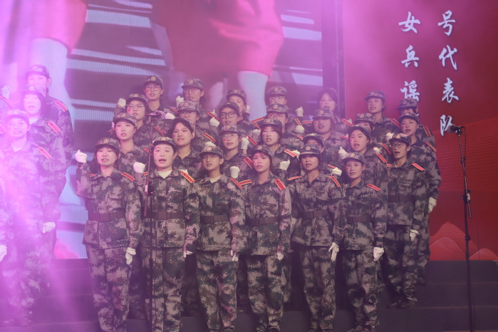 比赛现场,各参赛连队迈着整齐步伐依次登场,新生们身着笔挺的军训服,目光坚定,精神饱满,展现出新时代大学生昂扬向上的精神风貌。来自五个二级学院的十二支代表队为全场观众带来了二十四首曲目,《歌唱祖国》、《祖国不会忘记》等歌曲将“家国情怀”融入歌声,引领青年在歌声中坚定理想信念,抒发对祖国的无限深情与崇高敬意;《团结就是力量》、《学习雷锋好榜样》节奏铿锵、精神昂扬,号召青年们在集体中凝聚力量,在奉献中砥砺前行;《保卫黄河》、《强军战歌》唱出了同学们的豪迈气势与强军报国的坚定决心,展现了新时代青年的血性担当;《中国军魂》、《冲锋号》气势如虹,听党指挥、能打胜仗,让全场观众感受到同学们的坚定信念和不变决心;《血染的风采》、《女兵谣》饱含深情,以悠扬的歌声将革命岁月与家国故事娓娓道来,传递出对历史的铭记与对先烈的缅怀;《没有共产党就没有新中国》、《复兴的力量》 表达出了新时代青年怀揣梦想、坚定信念、紧跟党走、追逐未来的精神风貌;《灯火里的中国》、《天耀中华》唱出了身处新时代的新青年对祖国的美好祝愿,以及不断谱写崭新诗篇的使命与担当。