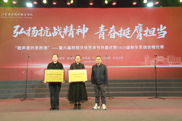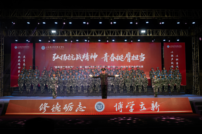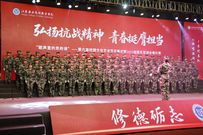 秋风送爽,军歌嘹亮。为深入学习贯彻习近平总书记在纪念中国人民抗日战争暨世界反法西斯战争胜利80周年大会上的重要讲话精神,庆祝中华人民共和国成立76周年,激励青年学生筑牢信仰之基、涵养家国情怀,矢志不渝听党话、跟党走,10月20日,由校团委、马克思主义学院、校关工委联合主办的“歌声里的思政课”——第六届校园文化艺术节开幕式暨2025级新生军训合唱比赛在贾汪校区隆重举行。党委副书记成伯君,党委委员薛莲、李志浩,团委、学工处和各二级学院相关负责同志,马克思主义学院全体教师、新生辅导员、承训部队教官以及2025级新生参加活动。