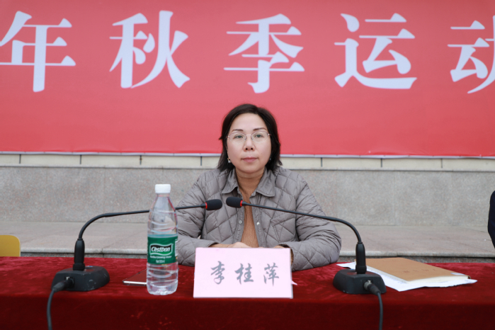 校长李桂萍致开幕词,她代表学校对运动会的胜利召开表示热烈祝贺,向为筹备运动会不辞辛劳的广大师生员工表示衷心的感谢。李桂萍指出,学校始终坚守“健康第一”的教育理念,把体育工作作为推进“五育并举”、培养全面发展人才的重要内容,在省内外高水平体育竞赛中取得了丰硕的成果。同时对全体学生提出三点希望:一是做“运动常客”,主动走向操场、走进球场,让每天锻炼一小时成为自觉行动;二是做“拼搏勇者”,在赛道上全力冲刺,在赛场下从容豁达,让体育精神照亮成长之路;三是做“文明使者”,文明呐喊、理性助威,坚守岗位、热情服务,让团结友爱、尊重包容的氛围成为校园最美的风景。