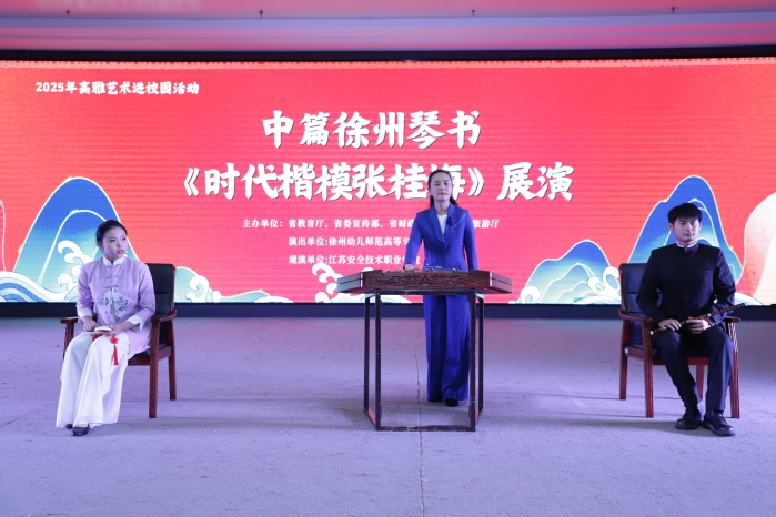 传扬张桂梅事迹是最好的思政教育内容,将张桂梅模范事迹用国家级非遗艺术徐州琴书形式表现,为传统艺术形式赋予了时代精神和内涵,同时也是用中华优秀传统文化教育人,用时代孕育的伟大教育家精神感染人,用大思政的课堂培养人的有效模式。通过近距离感受时代楷模的人格魅力,师生们共同经历了一场深刻的精神洗礼,不仅深化了对“奉献”“责任”的理解,更坚定了青年学生将个人理想融入国家发展的信念。大家纷纷表示,要将这份感动转化为刻苦学习、回报社会的实际行动。