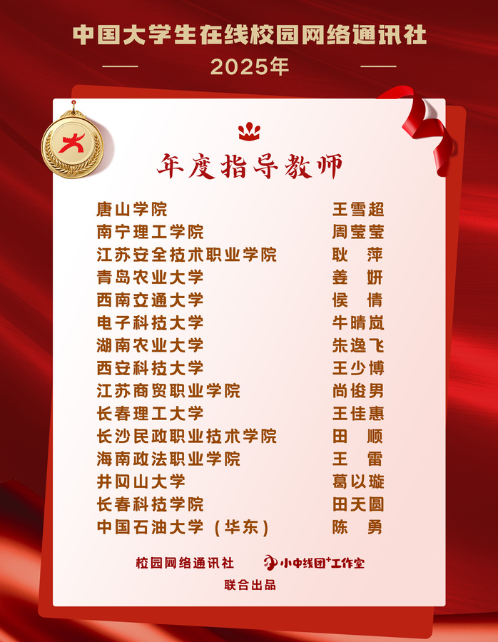 12月25日,教育部中国大学生在线公布了2025年校网通社获奖名单。我校入选年度校网通站,获评年度网络文化活动优秀组织高校。党委宣传部耿萍老师入选中国大学生在线校园网络通讯社“年度指导教师”,校大学生记者团学生赵晨冉入选“年度学生通讯员”。