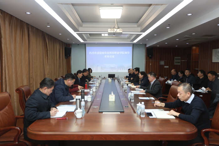 1月7日,盐城农业科技职业学院党委书记孙永龙,纪委书记许为柏,副校长束秀玉、宋俊苏等党政领导及相关部门负责人一行,莅临我校调研交流。校长李桂萍、纪委书记朱伟军,副校长吉智,党政办公室、教务处、学工处等相关部门负责同志参加活动。