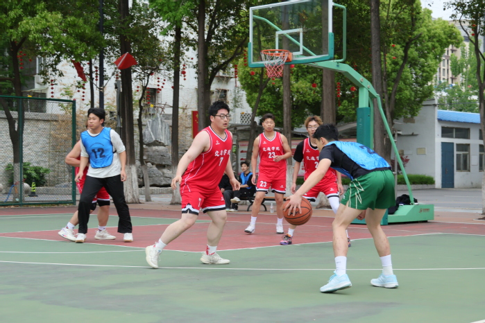 张东良为篮球赛开球,宣布本届体育文化节各项比赛正式启动。