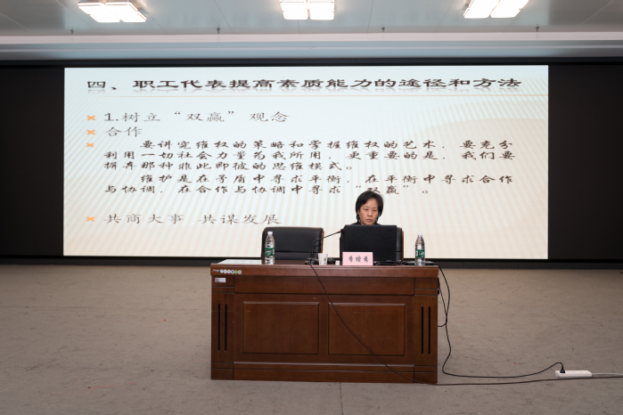 培训特邀徐州市总工会事业发展服务中心季绪秀老师、中国矿业大学工会主席陈仲元博士两位业内专家来校授课。季绪秀结合自身丰富的职工民主管理教学与实践经验,围绕职工民主管理、代表履职开展专题辅导,为我校规范民主管理、提升代表履职能力提供了清晰思路和务实指引。陈仲元结合高校教代会工作实践,以实操引领为重点,围绕提案工作等关键环节分享先进经验,为我校代表履职实践提供了高质量借鉴,两位专家授课各有侧重、相辅相成,切实推动代表履职能力全面提升,为学校民主管理工作提质增效注入动能。