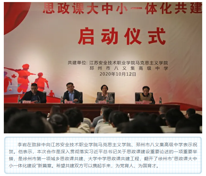 邳州教育:江苏安全技术职业学院马克思主义学院与邳州市八义集高级中学开展思政课共建活动