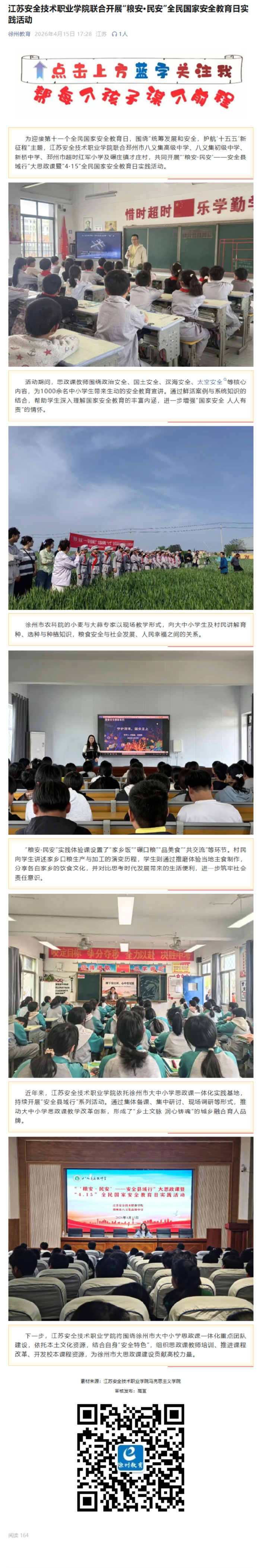 徐州教育:江苏安全技术职业学院联合开展“粮安·民安”全民国家安全教育日实践活动