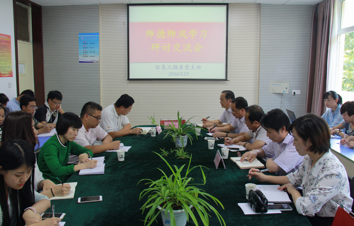9月23日,学院在信息工程系会议室召开“两学一做”师德师风研讨交流会。各教学单位党支部书记到会观摩,信息系全体教职工参加会议。