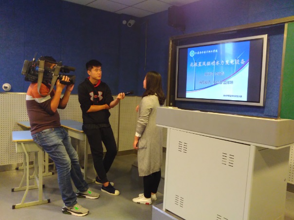 徐州市电视台现场采访我院北极星风驱动水力发电项目负责人