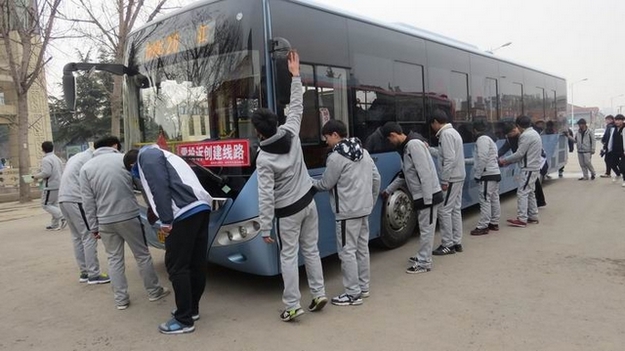 机械工程系学生为26路公交车义务洗车