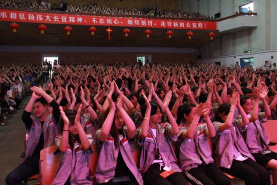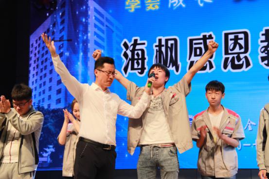 在一片欢呼声中感恩教育专家海枫老师闪亮登场。讲座围绕“感恩”二字展开,分感恩祖国、感恩父母和修身励志三个部分,采取激励引导和亲情互动方式,援引鲜活的故事、生动的情节,并辅以动人的背景音乐,一步步引导学生如何知恩、感恩、报恩,教育同学们“感恩要大声说出来”,“感恩要付出行动”。会场所有人都沉浸在海枫老师营造的感恩氛围中,或深有感悟,或沉思反省,或热泪盈眶。在现场互动环节中,许多同学争先恐后走上讲台,大声喊出自己肺腑之言:“爸爸、妈妈,我想你们,我爱你们!”整个演讲持续近两个小时,现场掌声不断,气氛浓烈。