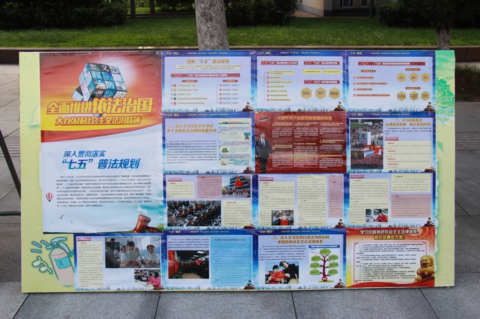 活动中,通过宣传展示板 、学生班级学习法律知识、法律宣讲等形式多样的宣传方式对全院师生进行了法律宣传。