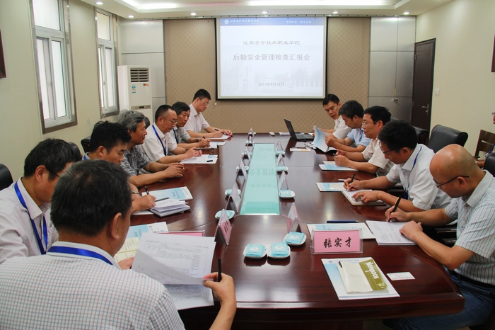 9月19日,江苏省高校后勤安全管理第十六检查组一行9人来我院检查工作。专家们对我院学生餐厅、学生公寓、医务室、配电室、超市等逐一进行检查,认真查阅我院后勤安全管理工作台账,听取了后勤安全工作汇报,对我院后勤安全工作给予充分肯定。院长徐建春、副院长吴如根、副院长任国兴出席汇报会。