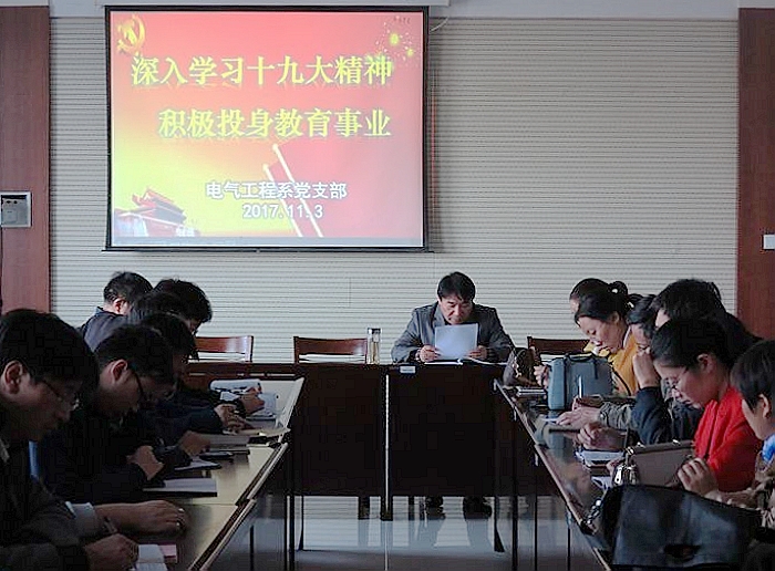 电气系教师政治理论学习会:要全方位、系统化地学习十九大精神,准确理解和把握十九大精神的核心,切实做到不忘初心、牢记使命,坚定青年学生为社会主义建设不断奋斗的信心。