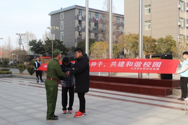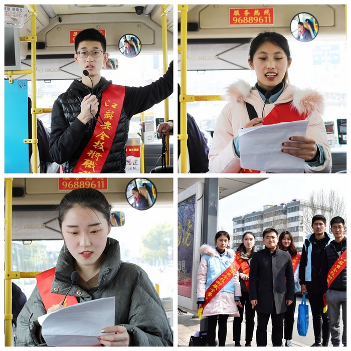 云龙校区学工科开展“雷锋精神”宣讲活动,组织大学生志愿者到1路和10路公交车上向乘车市民宣讲雷锋精神。