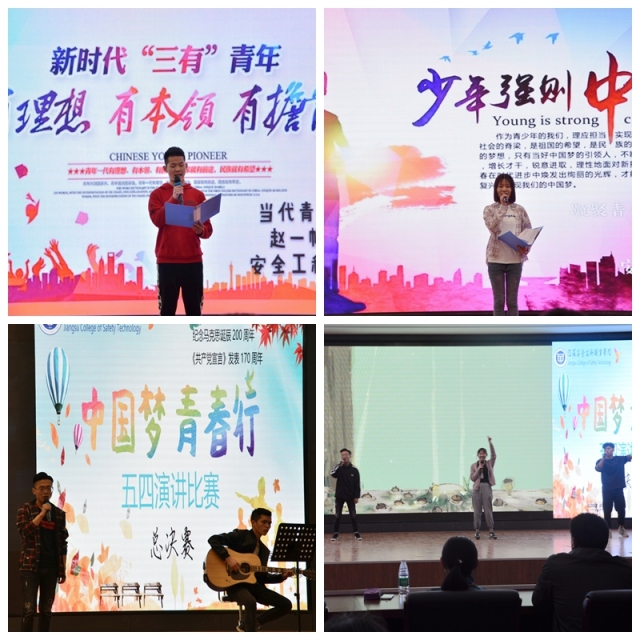 贾汪校区电气系、机械系开展“迎五四,做爱国有为青年”、“弘扬五四精神、做新时代的建设者”主题教育活动和学团干部座谈会。