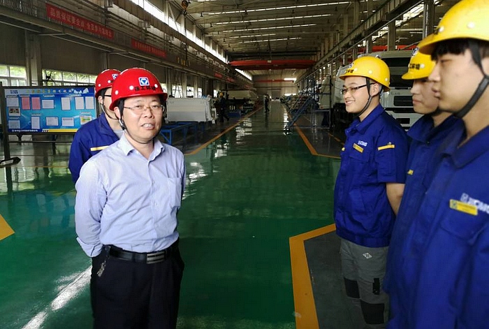 为切实落实现代学徒制工作,5月5日下午,院长徐建春、副院长李桂萍及招生就业处工作人员一行3人应邀到徐州徐工环境技术有限公司调研。徐建春一行参观了企业生产车间和徐工集团产品体验馆,看望我院在企业实习就业的学生,并与徐工环境的总经理刘庆东、党委副书记陈颜鹏、分厂书记吴继光、分厂厂长王飞等进行了校企合作会谈。