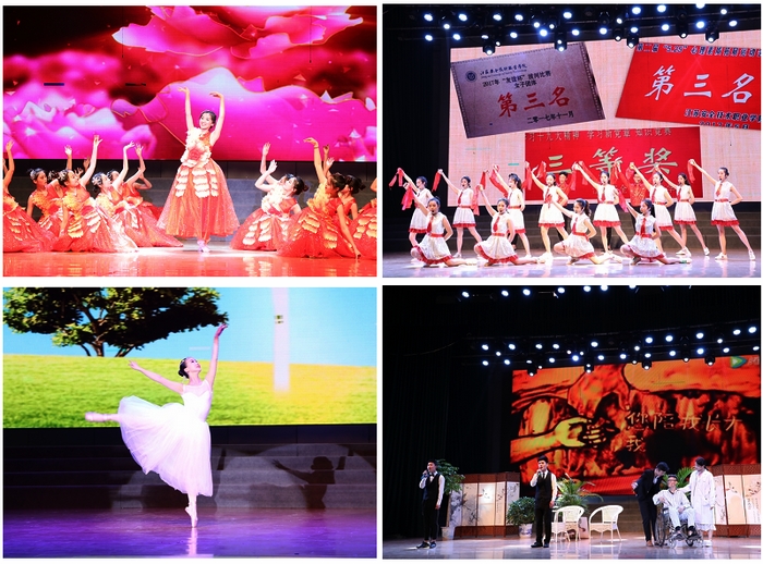 在精彩的开场舞蹈《花开盛世》后,系部文化展演节目纷繁呈现。汽车工程系同学带来的朗诵节目《我骄傲我是中国人》,激情澎湃、充满正气,较好地表达了当代大学生对于祖国的感激与热爱;双簧节目《我是大明星》诙谐幽默、形式简单却不失“笑”果;尤其是小品《老爸,我爱你》获得广泛的认可,小品以儿子去敬老院看望失忆的爸爸为背景开始,全程展现着父亲对于儿子那份无声的关爱和保护,最后以父子团聚结束,由于演员表演到位、传神,细节展现清晰、合理,使得整个会场充满着思念亲情、感恩父母的旋律,不少观众留下了感动的泪水。信息工程系三个舞蹈《匆匆那年》、《咏春》、《芳华》,分别从校园记忆、中国风、青春情怀三个角度展现人们对于美好生活的向往。优雅中传递着青春的正能量。整场节目不仅向同学们传递着积极的价值引导,也给同学们带来美的享受。最后,学校合唱团带来的《少年中国说》、《青春集合在军旗下》歌唱出同学们的青春活力和满心正气,为整场开幕式画下圆满的句号。