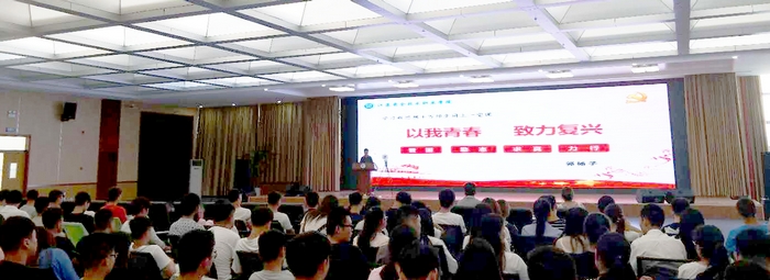我院思政教研组教师郭杨子老师以《以我青春,致力复兴》为题给全院学生作首场讲座。郭杨子老师从“青春故事—初心的执着、铭记历史—爱国之力量源泉、励志践行—复兴之原生动力”等三个方面解读了总书记在北京大学师生座谈会上的讲话。同学们纷纷表示,要学习贯彻落实总书记提出的“爱国,励志,求真,力行”要求,勇担时代大任,做德智体美全面发展的社会主义建设者和接班人。 (文/王昌福)