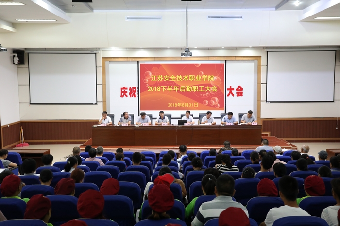 为更好地激励后勤部门干部职工在各自岗位上履职尽责,为师生提供优质服务,以饱满的热情投入新学期工作,8月31日上午,学院在106会议室召开2018年下半年后勤职工大会。会议由总务处史经才处长主持,吴如根副院长出席会议并讲话。总务处、后勤管理处、财务处、顺达后勤服务中心全体工作人员和物业公司全体员工、各食堂餐饮公司全体从业人员参加了会议。