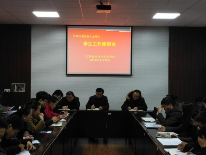 当天下午孙书记又主持召开了学生管理工作座谈会,各系学管主任、团总支书记、辅导员和班主任代表参会。大家围绕2018年度学生管理工作的不足和改进思路,学生存在的突出问题,学生工作好的意见和建议依次交流发言,孙书记认真听取和记录各系部代表发言,要求学工部门对各位老师提出的建议进行认真研究,并将积极成果吸收到2019年学生工作中。