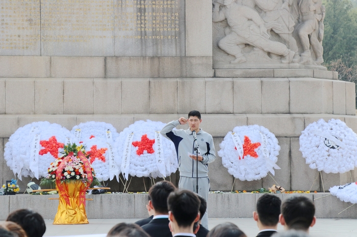 又是一年清明时,桃红李白、春暖人间。4月3日,院团委组织青年大学生代表100余人赴淮海战役纪念塔开展清明节祭扫活动,悼念为党和国家事业英勇献身的革命先烈们。