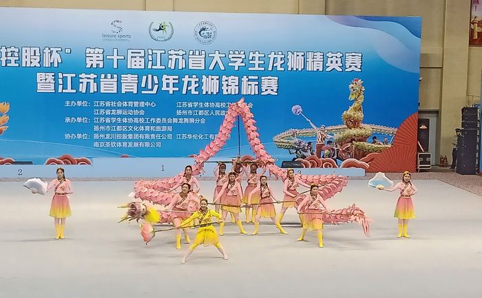 5月18日,我院倪莉、张超两位老师指导的舞龙队在第十届江苏省大学生龙狮精英赛暨江苏省青少年龙狮锦标赛中获得女子舞龙传统项目第二名。