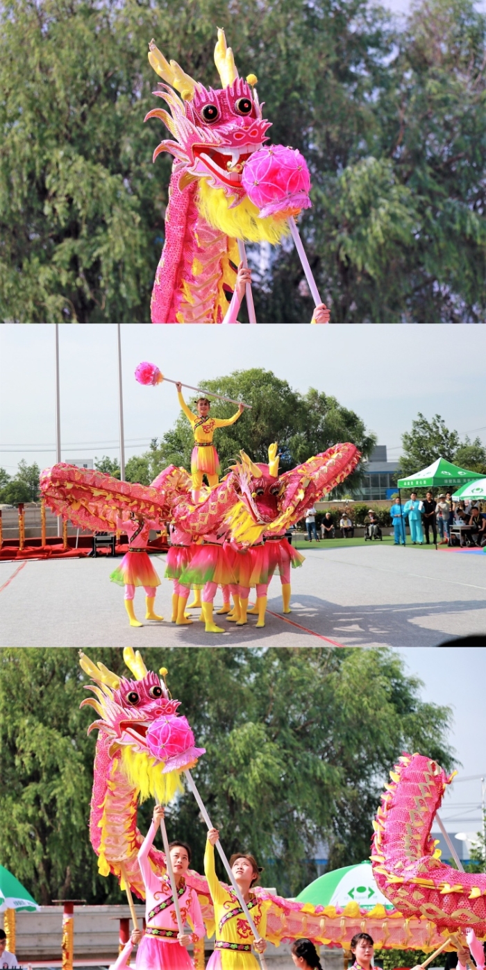 赛场上,我校的舞龙队员伴随着雄壮的乐曲舞动巨龙,巨龙在场上做着各种动作,翻、滚、盘、钻,巨龙时而翻腾滚动,上下翻飞,让人眼花缭乱;时而昂首盘踞,动作连贯、气势夺人,赢得阵阵喝彩。经过激烈的比赛,我校舞龙队最终以精彩的表演,向观众展现了苏安院学子顽强奋斗、追求卓越的精神,也接下来的比赛奠定了坚实的基础。 (基础部)