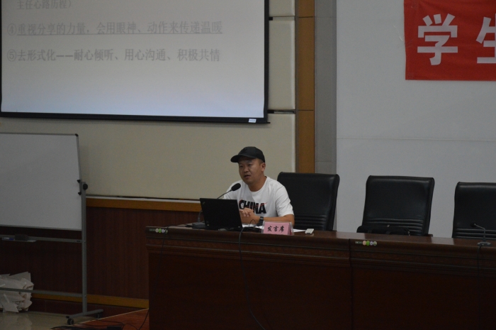 孙书记首先肯定了过去一学年我院在学生管理方面取得的进步,对从事学生管理工作的各位同志表示感谢,然后作《学生工作者责任感与幸福感》报告,孙书记语重心长、举例分享,从学生工作者需要的责任心、新时期重要任务、幸福感三个方面引导全体班主任提升认识。团委书记赵琦作《建好青年身边的共青团,当好学生身边的引路人》报告,向大家讲解新时代共青团的新使命,新时代青年学生的特点等内容。下午,学工处张立鹏老师作《高职院校班主任心理健康教育工作的实用主义和人文主义转向》报告,徐润生老师作《心理咨询案例分享》报告,为班主任教师下一步做好学生心理健康教育工作提供积极参考。