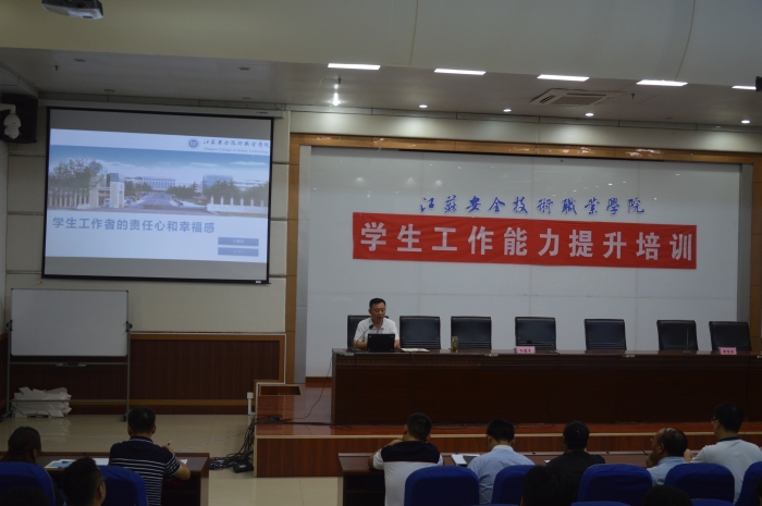 为进一步落实立德树人根本任务,促进学生管理工作规范化和科学化,聚焦新形势下班主任工作中的新要求、新任务以及重点难点问题,提升班主任思想引领能力、理论修养和业务水平。2019年学生工作者能力提升培训班于8月29日上午9时在贾汪校区B2楼106会议室开班。各系学管主任、班主任和专职辅导员参加了此次培训活动,开班仪式上,学工处黄清站处长介绍了此次培训班的日程安排和要求,党委副书记孙健身作专题讲座。
