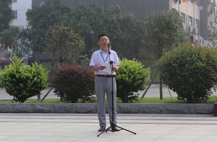 团委书记赵琦做军训动员,要求同学们积极调整心态,发扬军队艰苦奋斗的优良传统,以饱满的精神状态迎接军训生活,并将这种精神延续到以后的学习生活中去。