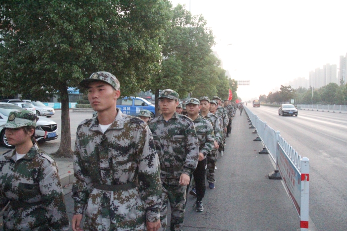 在整个拉练过程中,各连队按照编号,井然有序地行进,途经铜山路、庆丰路、云祥路、云苑路、徐州医科大等路段,没有出现堵塞情况。学生们不顾前期训练的疲劳,相互帮扶,始终保持着激昂的士气和满腔的热情,并齐声高喊着响亮的口号。行进途中,各方队教官,系部辅导员也跟随学生徒步行走,全程无一名学生掉队。