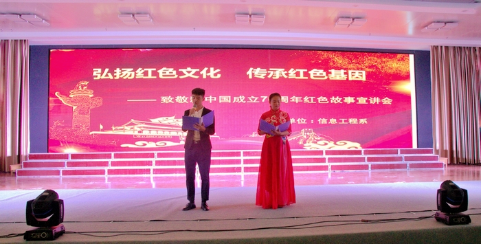 为贯彻落实习近平总书记提出的“要把党史、国史学习好,把红色基因传承好,要让青少年在学习和传承中,真正受到教育、得到锻炼”的指示精神,加强对大学生党史、国史教育的继续和深化,在新中国70华诞来临之际,2019年9月24日下午四时,信息工程系“弘扬红色文化,传承红色基因”红色故事宣讲会在云龙校区五楼大学生活动中心开讲,我系全体学生、教官及各位辅导员老师参加了此次活动。